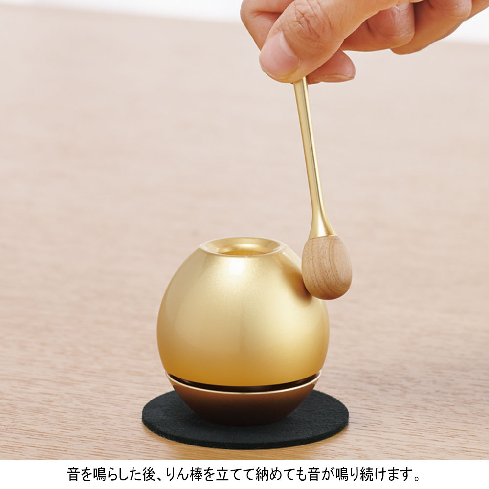 りん棒とセットのモダンなデザインのおりん。省スペースに便利なミニタイプもご用意。