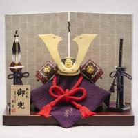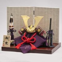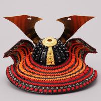 コンパクトにお飾りできる中鍬形・赤段糸威しの兜飾りです。兜の吹き返しには、蝶の柄があしらわれています。