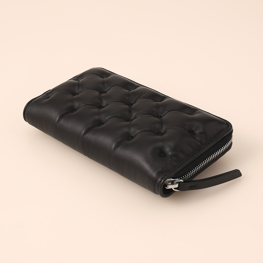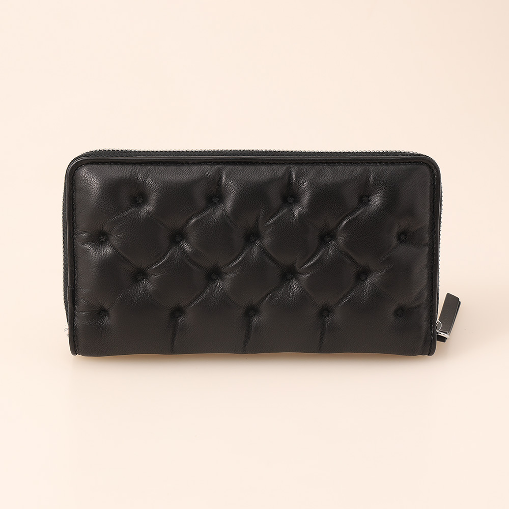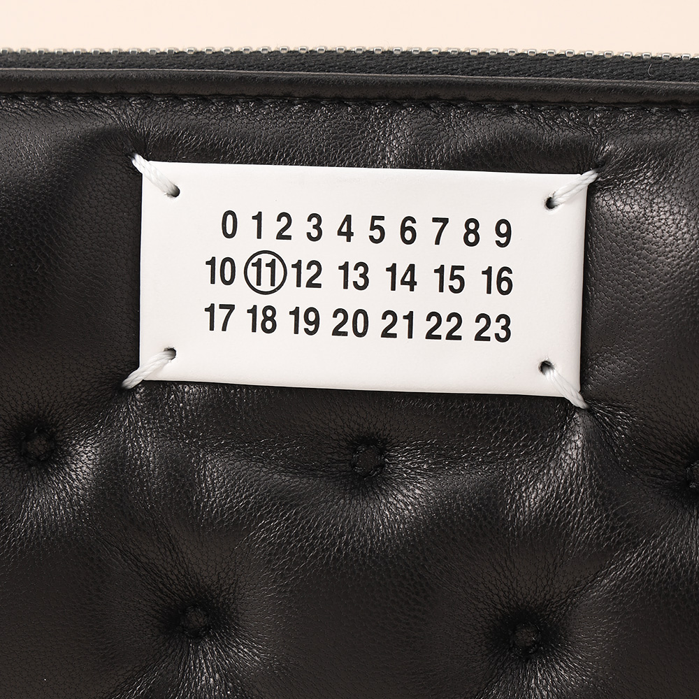 刺しゅう入りのキルティングナッパレザーで作られたグラムスラムウォレット。ジップアラウンドのデザインは、しなやかな丸みを帯びたエッジ、ジッパー付きの内側部分、メゾン象徴である数字のロゴタブが特徴です。