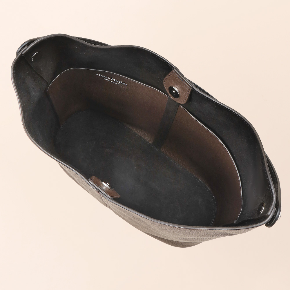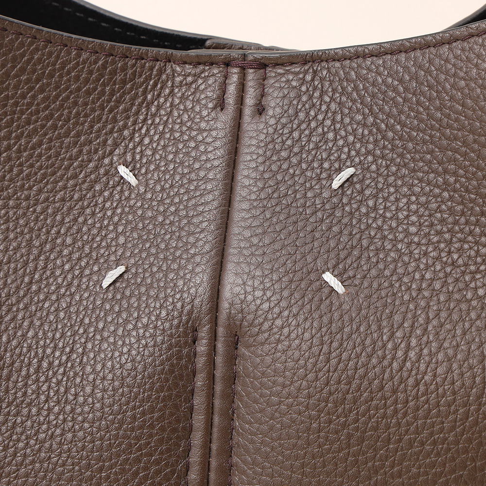 カーフスキンを使用したドレスエイジホーボー。底面のスタッズにより自立可能、インナーにはロゴがあしらわれ、背面にはメゾン・マルジェラのシグネチャーである4つのステッチが施されています。