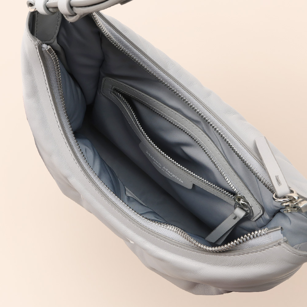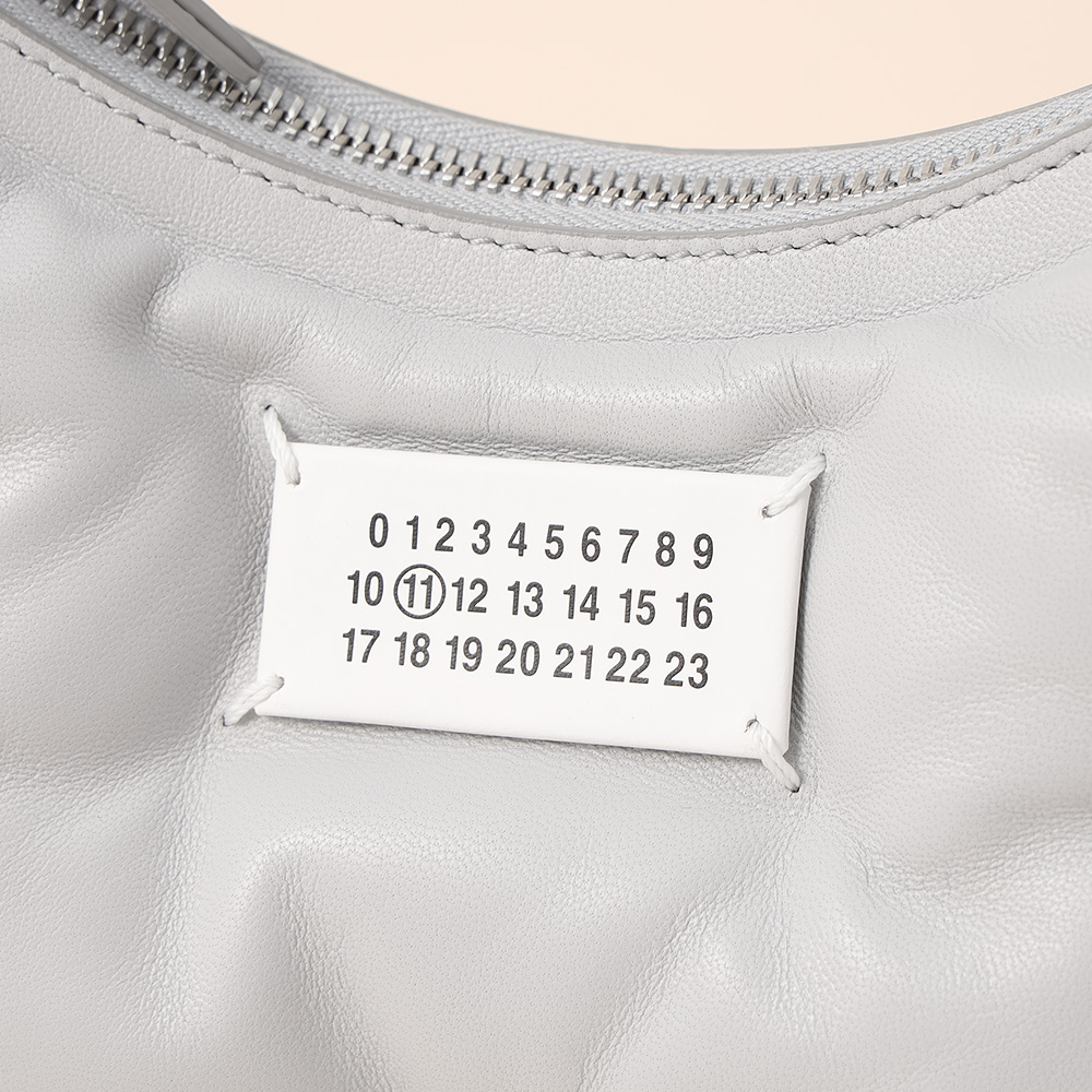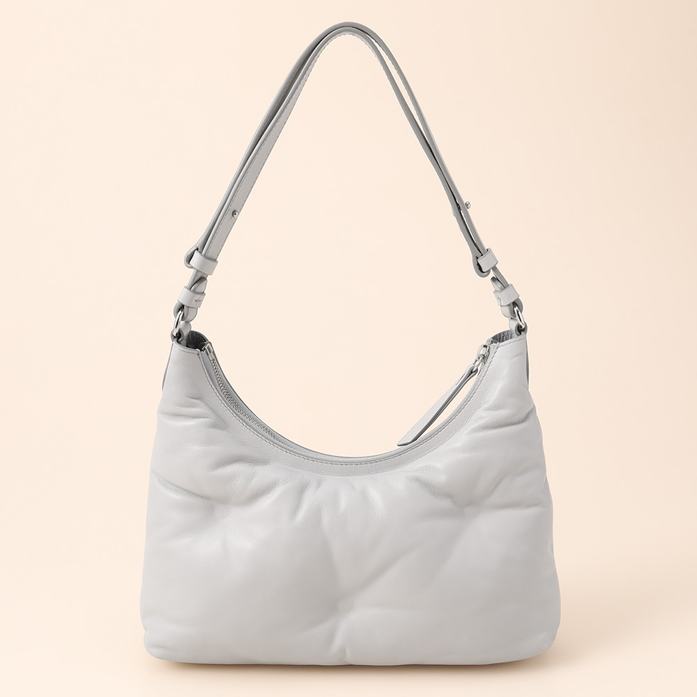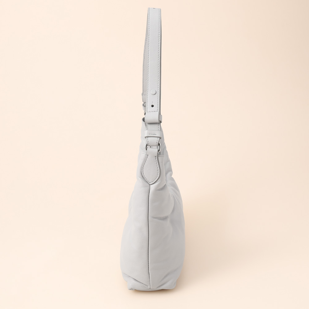 キルトナッパレザー製の「グラム スラム」ホーボースモール。レザーのショルダーストラップが付き、フロントにはナンバリングロゴラベルがあしらわれています。