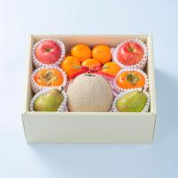 青森・長野県産りんご2玉(赤・青各1)、福岡県産富裕柿2玉、山形・長野・青森県産洋梨2玉、九州産みかん5-6玉、静岡・熊本・鹿児島・高知産メロン1玉