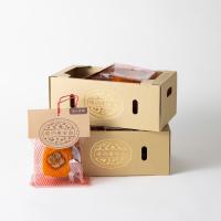 奈良県吉野の山麓で栽培される種無柿は昼夜の寒暖差で甘味を蓄えます。美味しい時期を見極めて一つ一つ丁寧に収穫し、一般的に行われている硫黄燻蒸を行わずに自然のうま味をぎゅっと凝縮したあんぽ柿を、果物の出荷箱をイメージしたギフトボックスにお詰めしました。柿そのものの甘み、旨みが凝縮され、トロリとした果肉が絶妙の口当たりです。