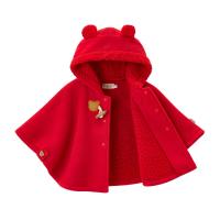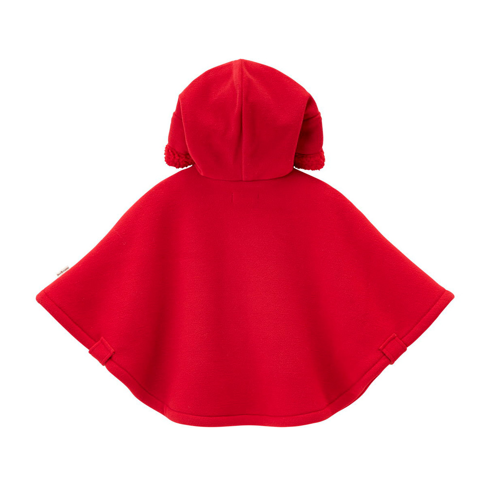 ベビーの時期におすすめの防寒アイテム「マント」。上品な印象のダッフル風デザインがかわいらしく、人気のアイテムです。ちょこんとお座りした姿や、よちよち歩く姿など、成長に合わせていろいろな可愛らしさを見せてくれます。表地には保温性に優れたやわらかなフリース素材を、裏地には暖かいボアフリース素材を使用。2つの素材を接着して一体化した生地は、軽くて着心地がよく、ふんわりあたたか。袖を通さずにさっと羽織れるデザインなので、首がすわる3カ月ごろから2歳ごろまで長くご使用いただけます。はじめてのアウターとしてはもちろん、おでかけ時のブランケット代わりにもぴったり。お箱入りなので、出産祝いやお誕生日プレゼントなどのギフトにもおすすめです。