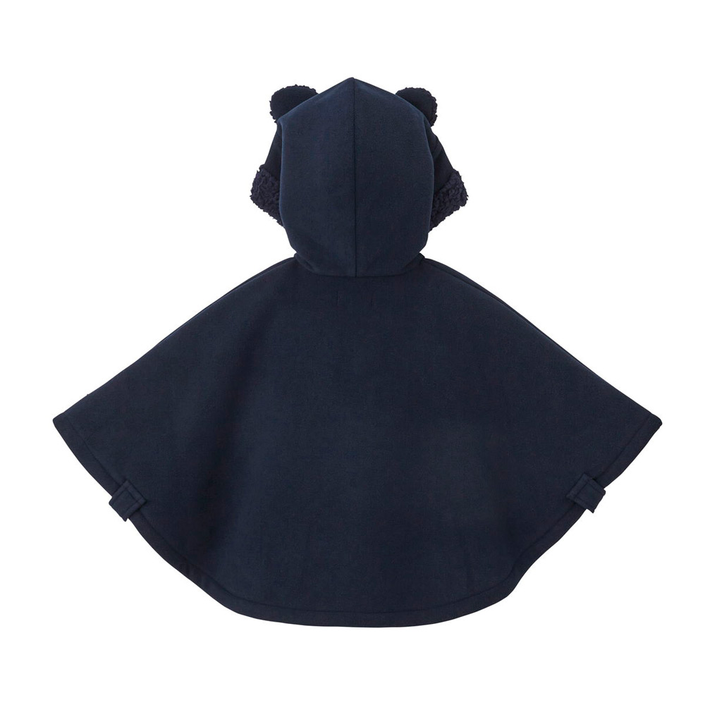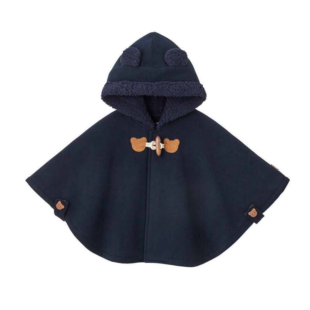 ベビーの時期におすすめの防寒アイテム「マント」。上品な印象のダッフル風デザインがかわいらしく、人気のアイテムです。ちょこんとお座りした姿や、よちよち歩く姿など、成長に合わせていろいろな可愛らしさを見せてくれます。表地には保温性に優れたやわらかなフリース素材を、裏地には暖かいボアフリース素材を使用。2つの素材を接着して一体化した生地は、軽くて着心地がよく、ふんわりあたたか。袖を通さずにさっと羽織れるデザインなので、首がすわる3カ月ごろから2歳ごろまで長くご使用いただけます。はじめてのアウターとしてはもちろん、おでかけ時のブランケット代わりにもぴったり。お箱入りなので、出産祝いやお誕生日プレゼントなどのギフトにもおすすめです。