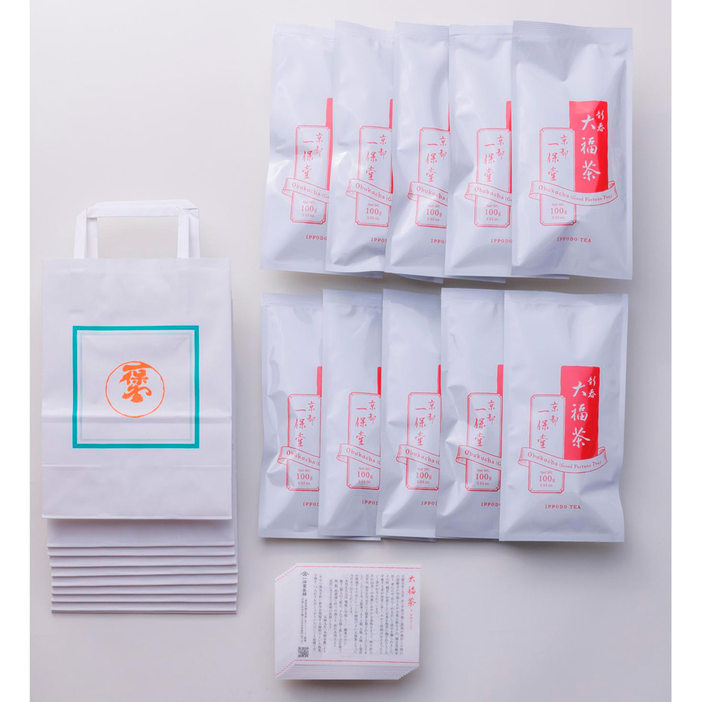 大福茶100g×10袋、手提げ袋×10枚、しおり×10枚