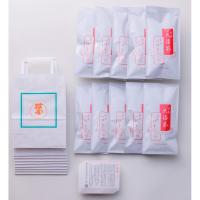 「よい年でありますように。みんなが健やかに過ごせますように」と願いを込めて元旦にいただくお茶を『大福茶(おおぶくちゃ)』といいます。日々の暮らしに使いやすく、熱湯で淹れていただける玄米茶です。この時季のお配りものに最適な100gを10袋、手提げ袋・しおりと一緒にご用意いたしました。帰省の手土産にもおすすめです。