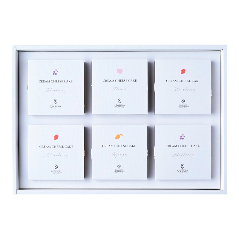 濃厚なクリームチーズと北海道産フレッシュクリームを贅沢に使い、濃厚でコクのある、まろやかなチーズケーキに仕上げました。個性豊かな4種類のフルーツとチーズケーキのハーモニーをお楽しみください。ストロベリー:ストロベリーの甘みと酸味を最大限に引き出した、華やかな味わいです。ピーチ:ピーチの繊細で上品な甘さ、うっとりするような甘い香りをお楽しみください。マンゴー:マンゴーの甘さにパッションフルーツの酸味がアクセント、さわやかな香りが口いっぱいに広がります。ブルーベリー:ブルーベリーの芳醇な香りと自然な甘さ、ほどよい酸味が絶妙なバランスです。