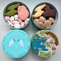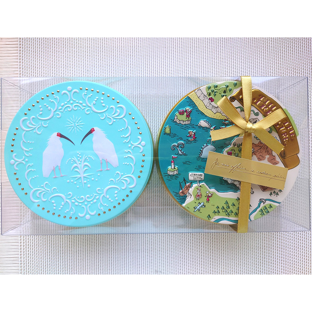 佐渡の豊かな自然と風を身体いっぱいに感じることができる、オーシャンビューの「島のカフェ」から、丁寧に手作りしたお菓子をお届けします。人と共生する鳥「朱鷺」をデザインした缶には、佐渡産コシヒカリの米粉入りクッキー・抹茶クッキー・紅白のメレンゲ菓子をお詰めしました。「佐渡クッキー缶」は、佐渡島型のバタークッキー・ココアの人面岩クッキー(佐渡名所)・アーモンドのクロッカンの詰め合わせ。贈りものにもぴったりの一品です。