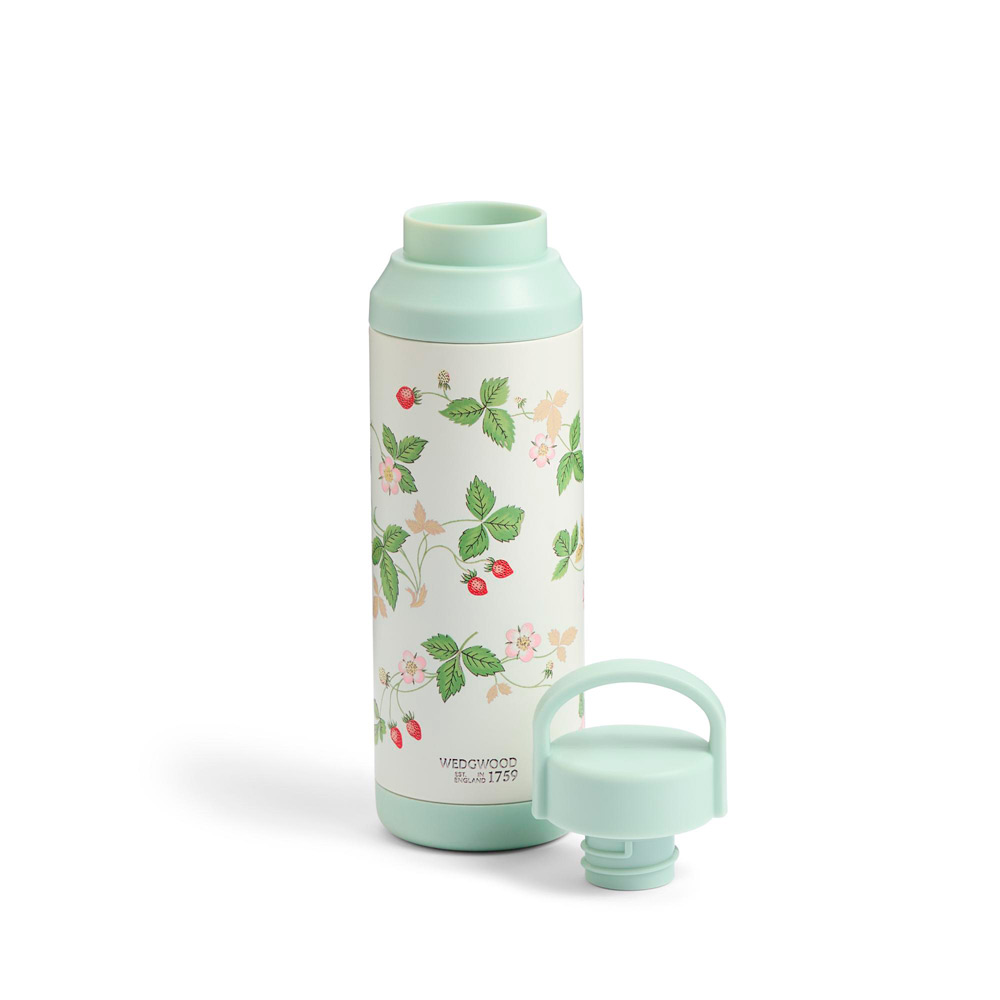 ウェッジウッドを代表する人気デザイン、ワイルド ストロベリーのサーモボトル(水筒)が登場。美しいデザインはもちろん、真空断熱構造で保温・保冷力に優れており、ハンドル付きなので、ひっかけたり持ち歩きしやすい使いやすい形状です。また、底面にはシリコーン製のパッドがついているので滑りにくく、静かに置いていただけます。日々のお出かけのお供にいかがでしょうか。
