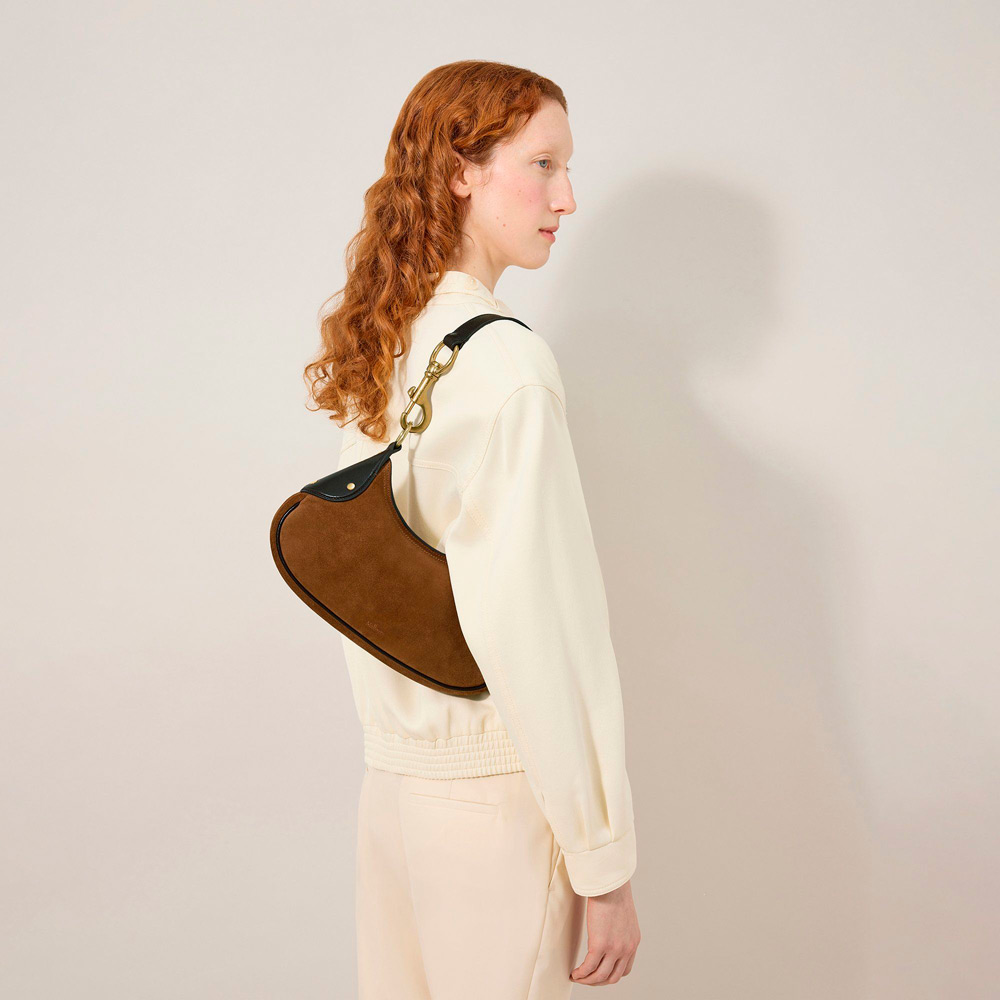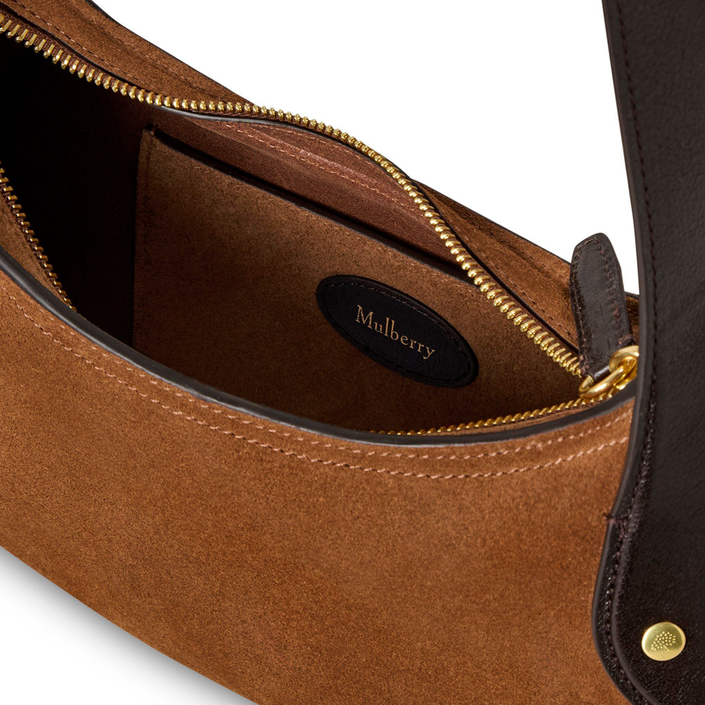 マルベリーのアーカイブデザインを徹底的に研究し、柔らかみのあるフォルムに落とし込んだスモール ハックニー ショルダーバッグ。スナップフックの留め具と、マルベリーツリーのリベットがあしらわれています。ひとつのバッグを完成させるのに携わる職人の数は30人。どのようなシーンにもしっくり馴染むエフォートレスなデザインはまさに、手間を惜しまずものづくりに励む彼らの姿勢の賜物です。