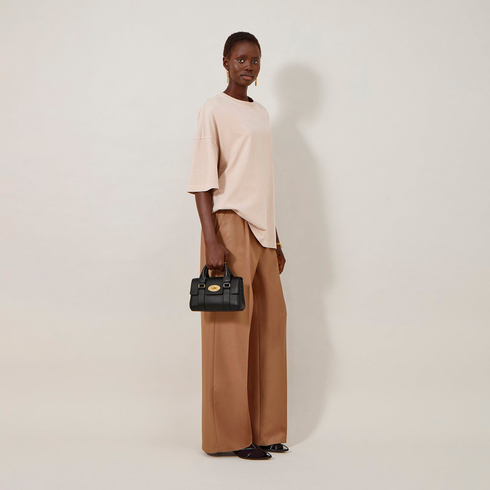 マルベリー定番のアイコンとして愛されてきたベイズウォーターが、コンパクトなミニサイズに。シックなフォルムと、昼夜を問わず活躍する使い勝手の良さが魅力のバッグです。タイムレスなポストマンズロックの留め具が付いており、2本のトップハンドルで手に提げて使ったり、斜め掛けにして使ったりと、さまざまなスタイリングをお楽しみいただけます。