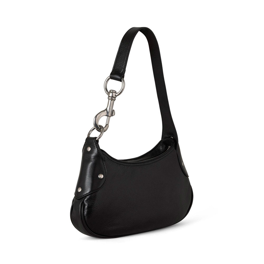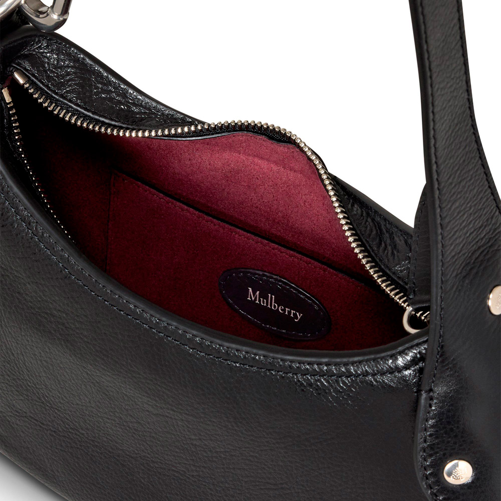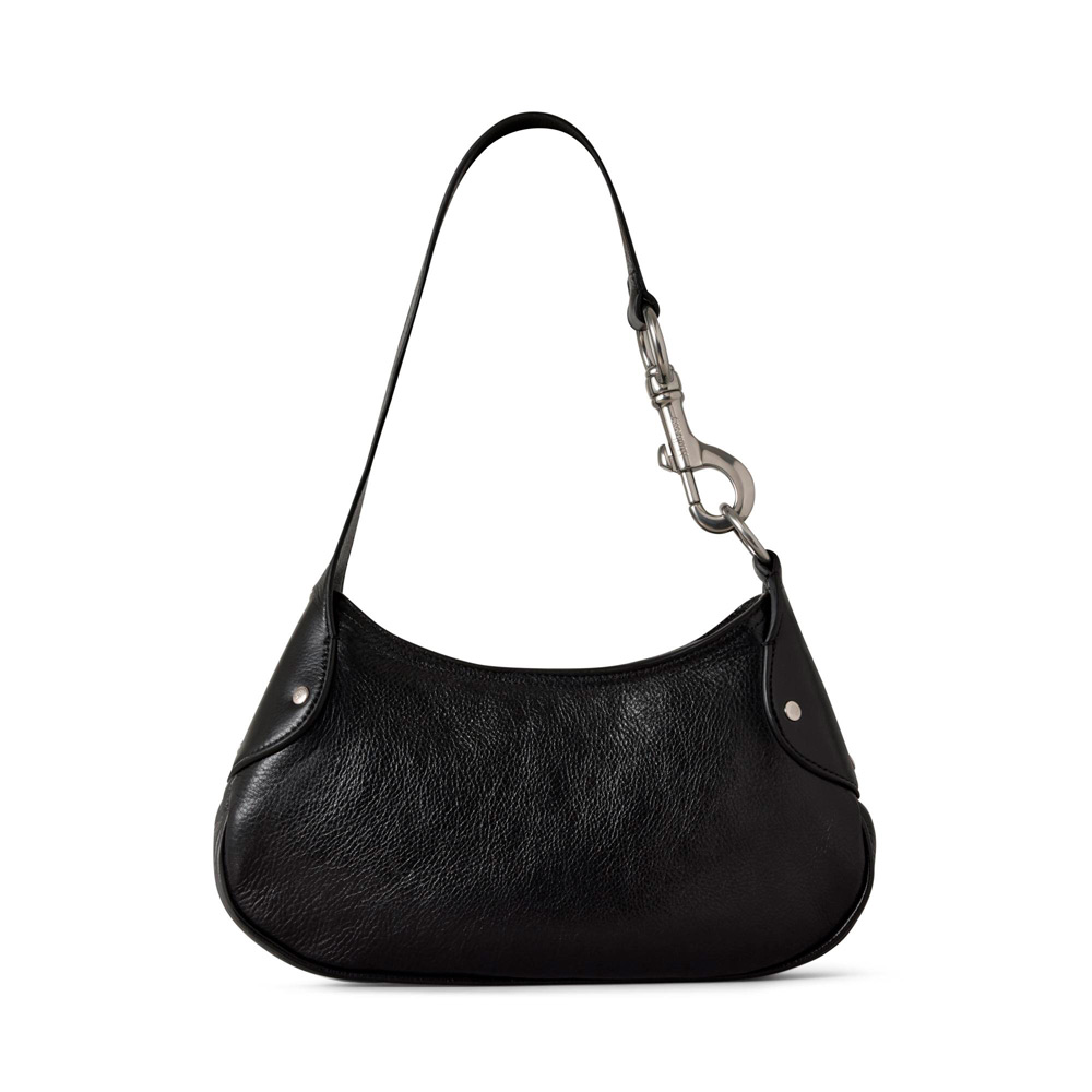 マルベリーのアーカイブデザインを徹底的に研究し、柔らかみのあるフォルムに落とし込んだスモール ハックニー ショルダーバッグ。スナップフックの留め具と、マルベリーツリーのリベットがあしらわれています。ひとつのバッグを完成させるのに携わる職人の数は30人。どのようなシーンにもしっくり馴染むエフォートレスなデザインはまさに、手間を惜しまずものづくりに励む彼らの姿勢の賜物です。