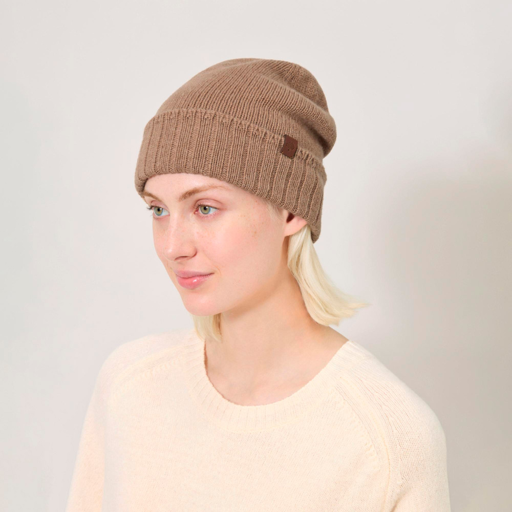 丹念に作られた贅沢なカシミヤ製のビーニーは、冬に大活躍するおしゃれの強い味方。マルベリーツリーのロゴ入りのレザーパッチがあしらわれています。