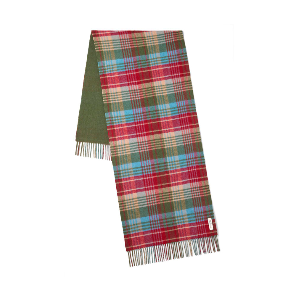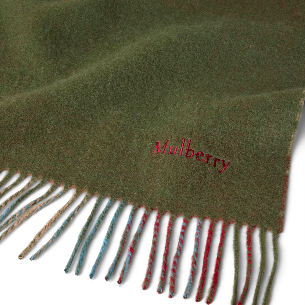 メリノウールのダブルフェイス生地のマフラー。首元を暖かくスタイリッシュに包み込みます。両端はフリンジ付きで、マルベリーのロゴが刺しゅうされています。