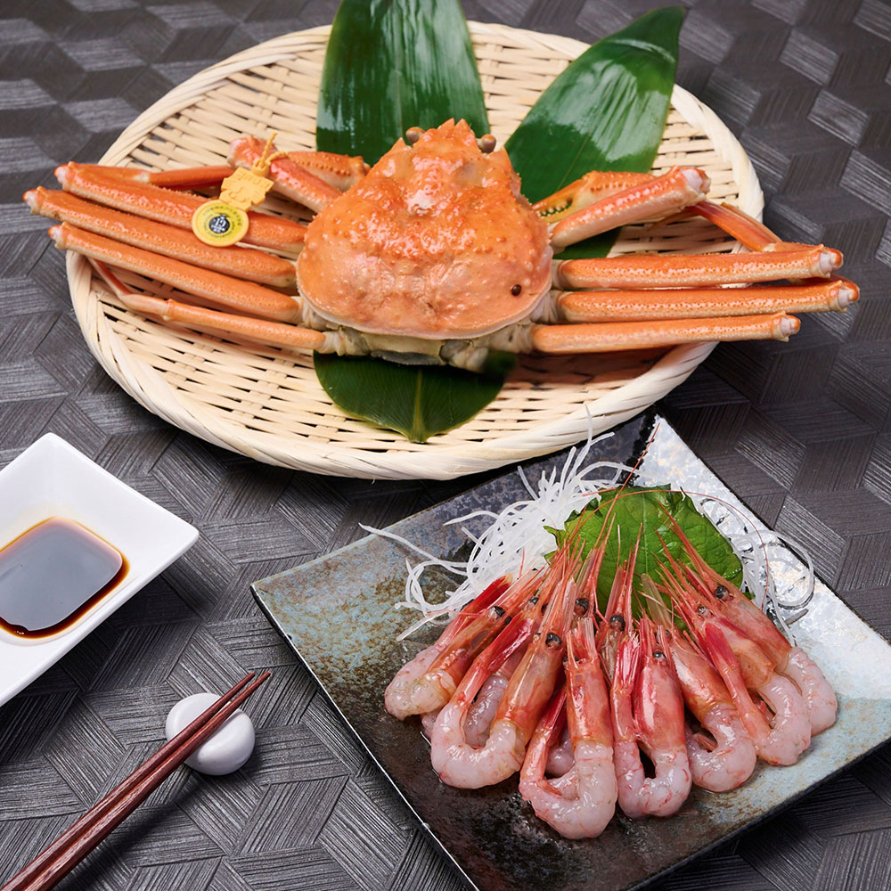 越前かに(訳あり足折れ)400g×1杯、ふくい甘えび(150g)
