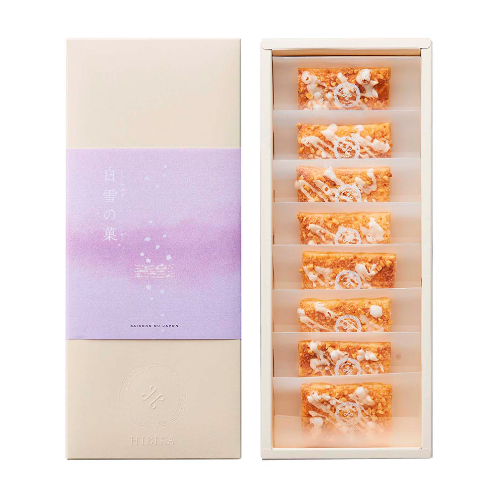 薄い生地の層が繊細に重なり合うバターが香るパイ生地に、白い雪のようなアイシングを絞ってサクサクに焼き上げました。豊かな風味と甘みが心を満たしてくれる、冬だけのおいしさです。