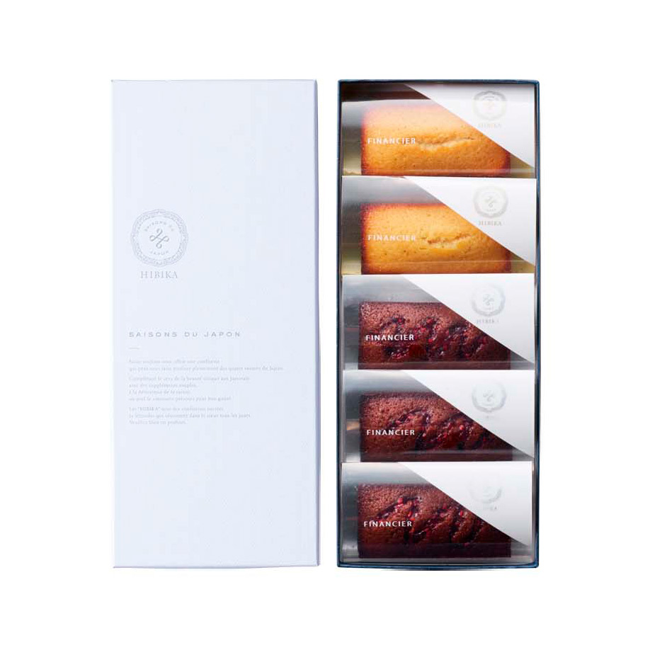選び抜いた素材で丁寧に、しっとり焼き上げたフィナンシェ。上品な味わいの“和三盆”と季節の味わいの“ショコラとフランボワーズ”を詰め合わせました。