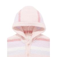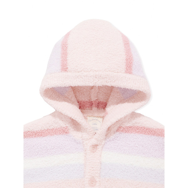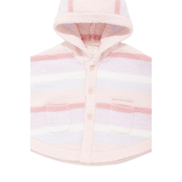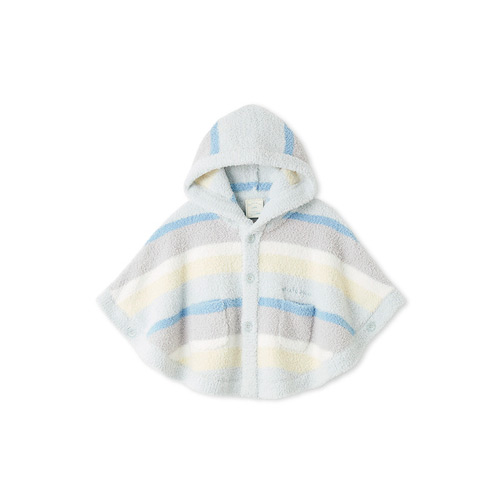 【Fabric】BABY MOCO(ベビモコ):もっちりとした柔らかな風合いが特徴。あたたかみと軽やかさを兼ね備えた着心地が魅力です。【Design/Styling】キャンディのようなカラフルなボーダー柄が幸せ気分を演出する、<ベビモコ>シリーズです。ふっくら軽い着心地のBABYサイズのポンチョは、これからの季節の羽織りに重宝するアイテム。季節の変わり目から春先までロングシーズンでお楽しみいただける1枚です。フロントポケット付きで、ワンポイントでロゴ刺しゅうも入れました。色はピンクとブルーの2色展開。同シリーズのロングパンツやロンパース、キャンディシリーズの小物と合わせたり、KIDSアイテムとのリンク・コーディネートもおすすめです。
