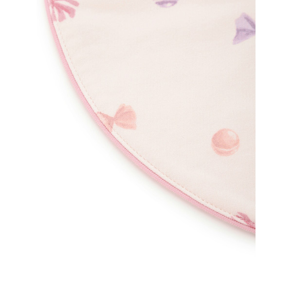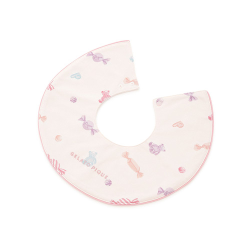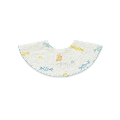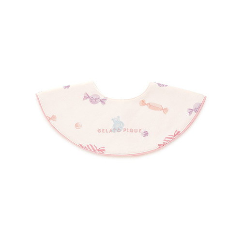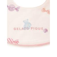 【Fabric】適度な厚みのあるコットン混のインレイ素材を使用しています。【Design/Styling】gelato piqueらしいベアやロゴモチーフのカラフルなキャンディを散りばめた、HAPPYな総柄プリントのBABYスタイです。柔らかく適度な厚みのあるコットン混のインレイ素材を使用。フロントにワンポイントで刺しゅうを入れ、縁に配色のパイピングを付けました。同シリーズのルームウェアや小物と組み合わせて、ギフトにもおすすめのアイテムです。