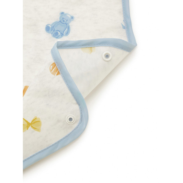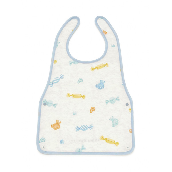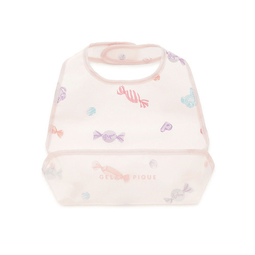 【Design/Styling】gelato piqueらしいベアやロゴモチーフのカラフルなキャンディを散りばめた、HAPPYな総柄プリントのBABY用お食事スタイです。濡れたり汚れたりしてもさっと拭き取れる素材を使用。ボタンを外せば丸めてママバッグ等に入れられます。同シリーズのルームウェアや小物と組み合わせて、ギフトにもおすすめのアイテムです。