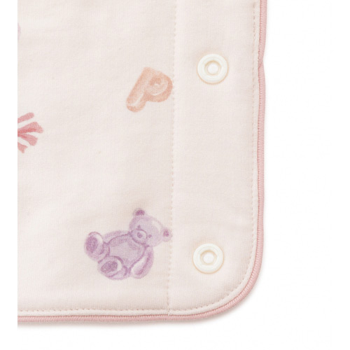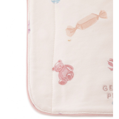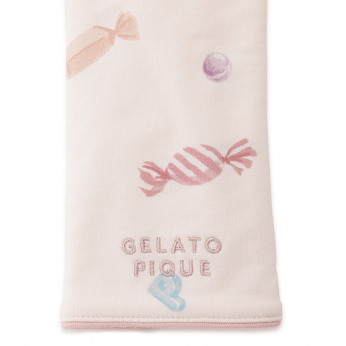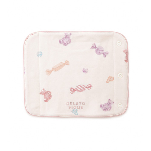 【Fabric】適度な厚みのあるコットン混のインレイ素材を使用しています。【Design/Styling】gelato piqueらしいベアやロゴモチーフのカラフルなキャンディを散りばめた、HAPPYな総柄プリントのBABYサッキングパッドです。柔らかく適度な厚みのあるコットン混のインレイ素材を使用。フロントにワンポイントで刺しゅうを入れ、縁に配色のパイピングを付けました。同シリーズのルームウェアや小物と組み合わせて、ギフトにもおすすめのアイテムです。