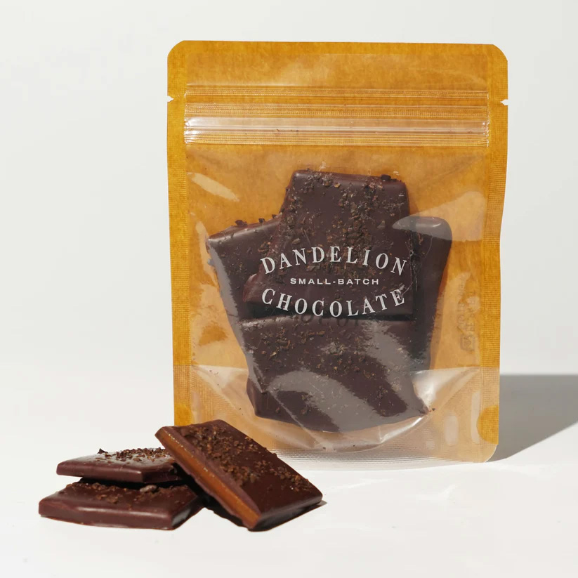 ほろ苦さと甘さの絶妙なバランスが、大人のための味わいを演出し、ひと口ごとに豊かな余韻が広がります。使用するコーヒーは、ダンデライオンと同じ蔵前エリアに店舗を構える「蕪木」のマンデリン。地域のつながりを大切にした、クラフトチョコレートとコーヒーが織りなす新たなマリアージュをお届けします。手作業で製造しているため、厚さや大きさにバラつきがあります。口当たりや食感の変化をお楽しみください。