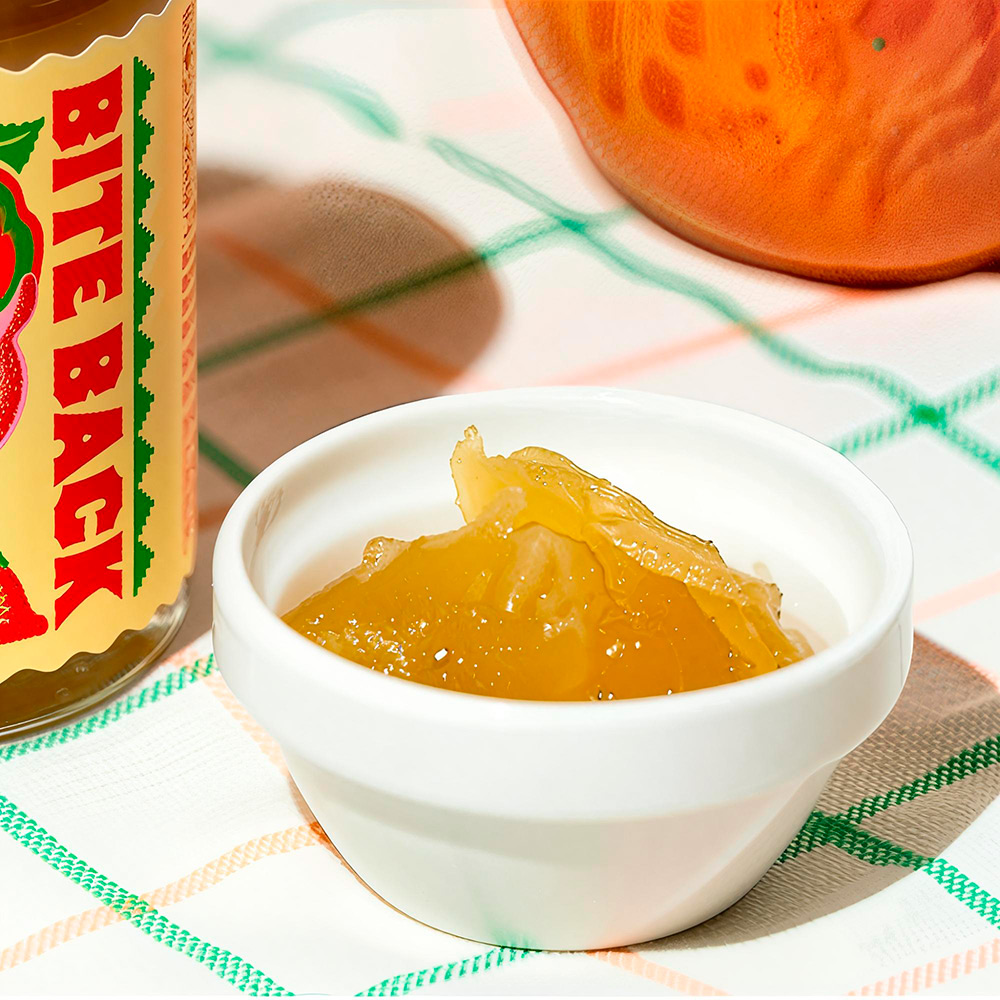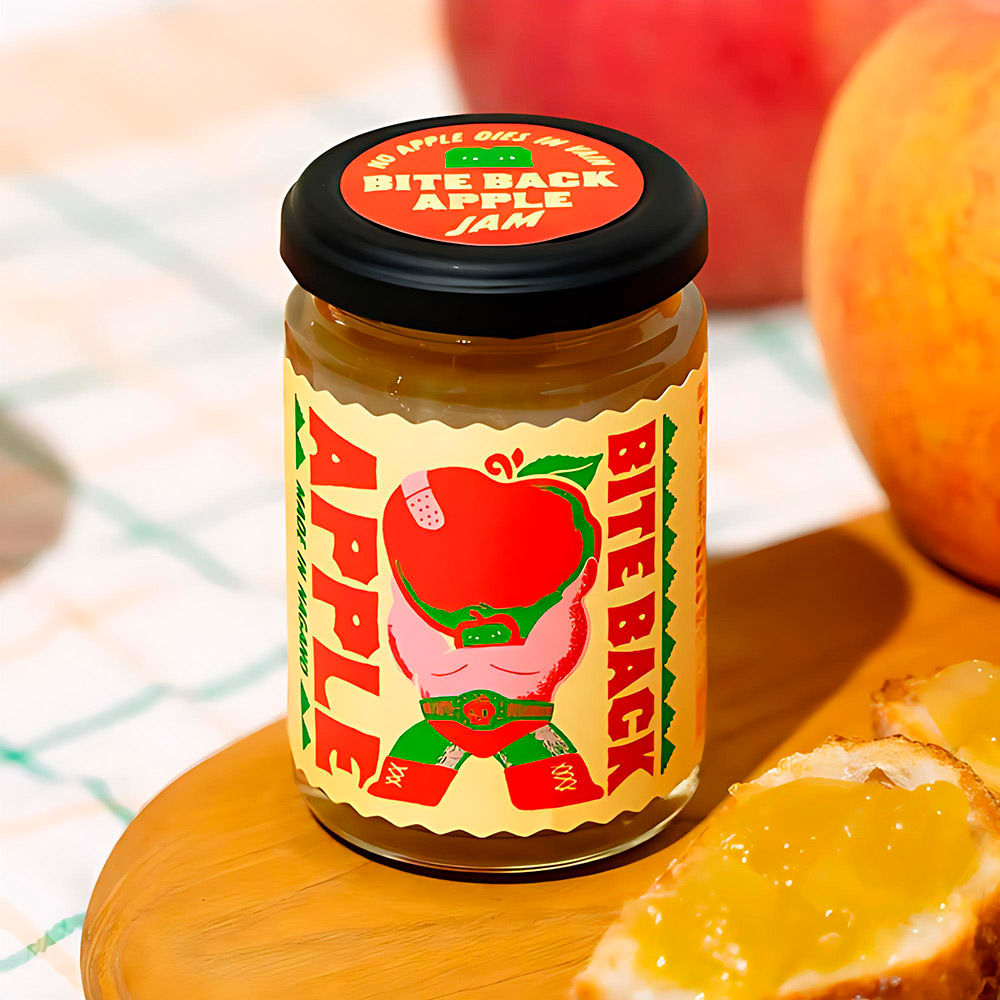 100年もの間、果物と向き合ってきた歴史ある農園の代表作である「葉とらずりんご」。そのりんごを使用して太陽光をたっぷり浴びて育ったりんごジャムは、甘みも酸味も香りも力強いのが特長です。甘さと酸味のバランスはばっちり、食感はシャクッと軽快、あとからふわっと、森のような余韻が広がる美味しいジャムに仕上げました。香りづけに使っているのは、橘の葉とシナモンリーフ。リアルに葉っぱから抽出した天然のフレーバーです。楽しげな中にも、芯のあるパッケージデザインもお楽しみください。