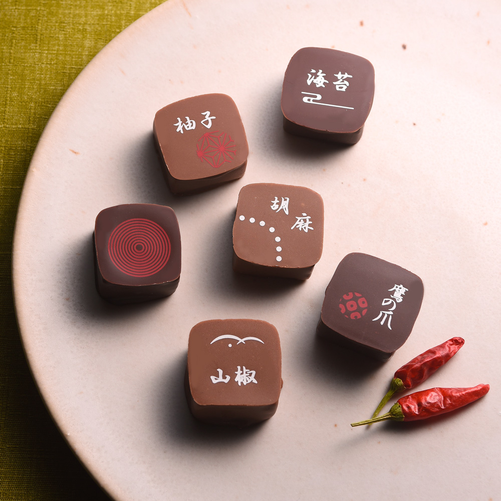 ボンボンショコラ6粒(柚子×1、海苔×1、山椒×1、鷹の爪×1、胡麻×1、柚子七味×1)