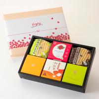 碾茶入り抹茶クランチショコラ(5個入)×1、ほうじ茶クランチショコラ(5個入)×1、抹茶ヴァッフェル×2、ほうじ茶ヴァッフェル×2、和紅茶TB(5P)×1、バラ煎茶TB(5P)×1
