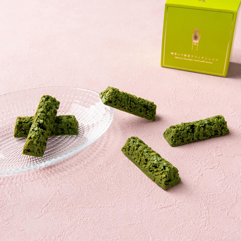 <クランチショコラ>まろやかな旨味の碾茶とフィアンティーヌ(薄焼きクッキーのフレーク)のサクッとした食感が楽しい抹茶クランチショコラと、香ばしいほうじ茶とフィアンティーヌのサクッとした食感が楽しいほうじ茶クランチショコラ。<ヴァッフェル>サクサクの波型クッキーに風味豊かな宇治抹茶のクリームをサンドした抹茶ヴァッフェルと、香ばしい豊かな香りのほうじ茶のクリームをサンドしたほうじ茶ヴァッフェル。<和紅茶>京都府南部の和束産で、紅茶に適しているセカンドフラッシュを使用しており、まろやかな甘味があり、ストレートでも美味しくいただけます。まずはストレートでひと口お召し上がりいただき、お茶本来の甘味をお楽しみください。<バラ煎茶>甘やかな香りのバラを爽やかな煎茶にブレンドしました。優雅なひとときを過ごしたい方に。