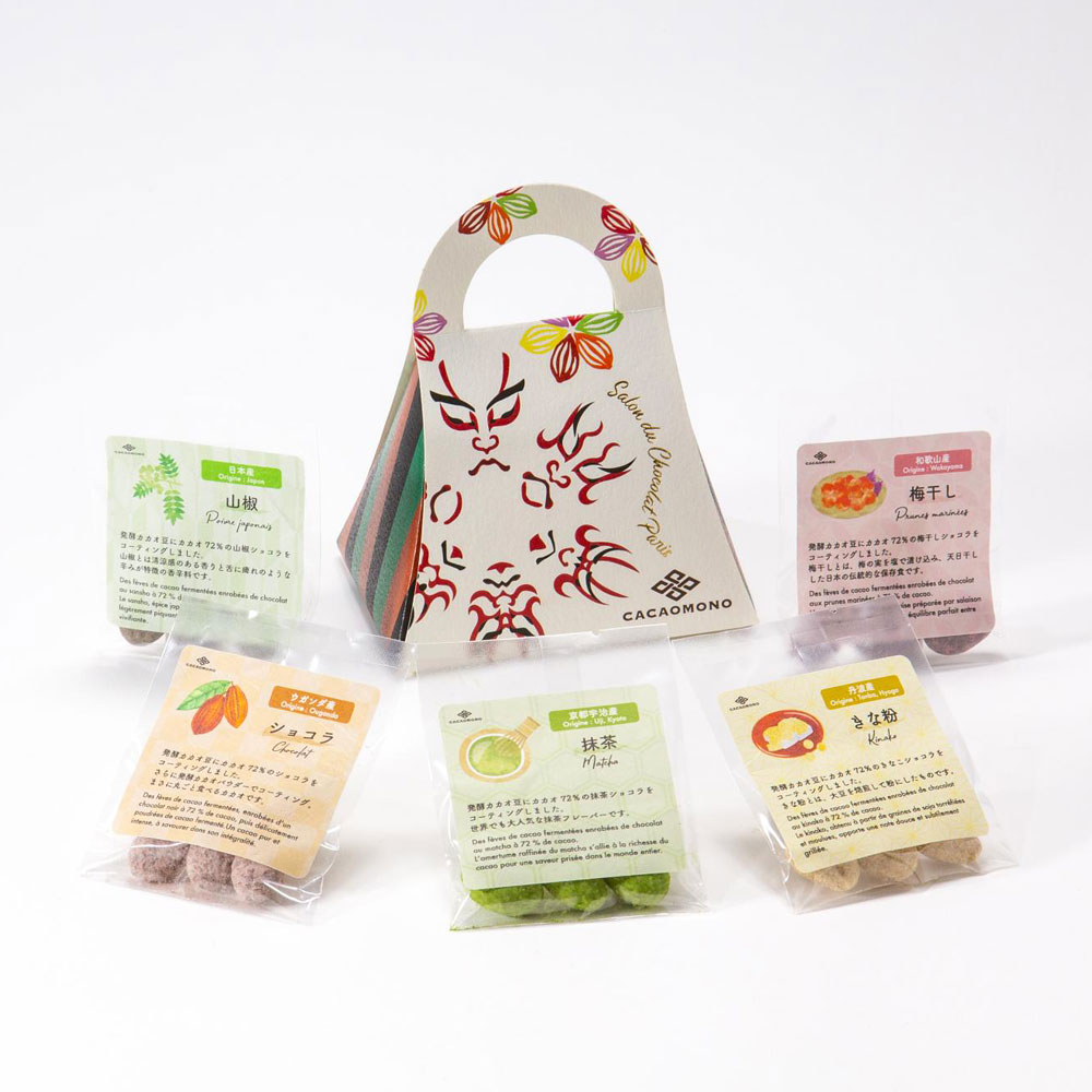 発酵カカオ豆(ショコラ、抹茶、梅干し、山椒、きな粉 各3粒)