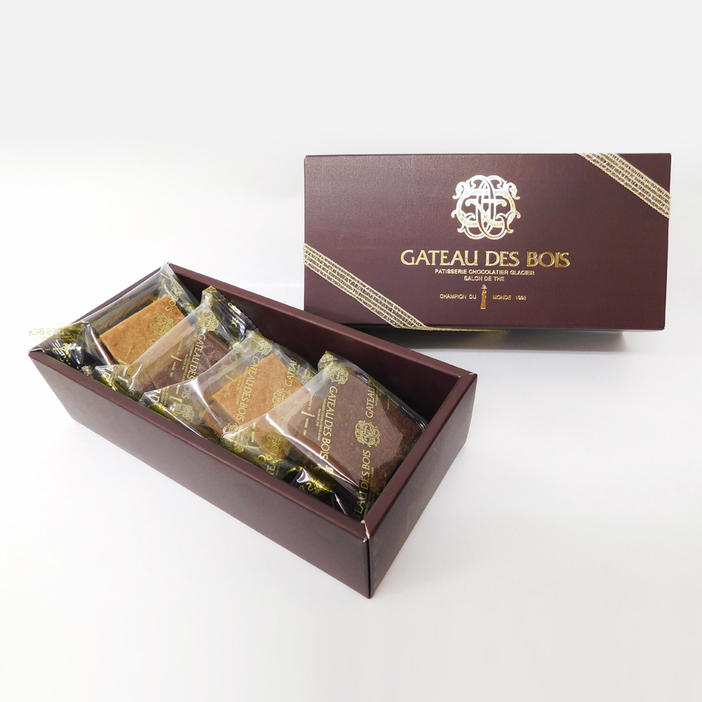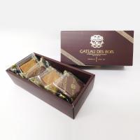 マダガスカル、ヴェネズエラ、エクアドル、ペルー、4つの産地別のショコラをキャラメルベースのガナッシュに。2種類のクーベルチュールで覆い、サブレショコラやスペキュロスでサンドしました。産地ごとのカカオの個性に合わせた組み合わせをお楽しみください。