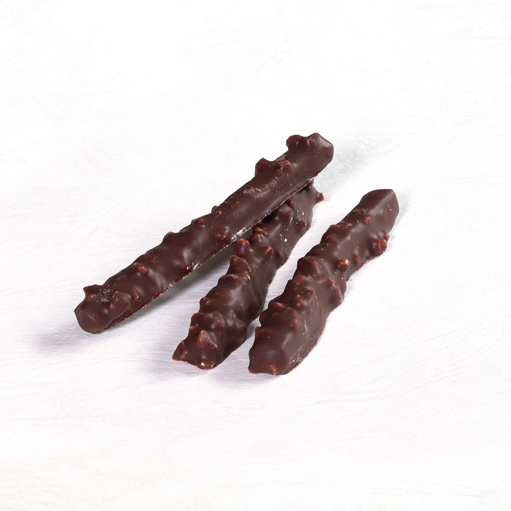 オレンジピールを乾燥させた後、ややビターな味わいのチョコレートでコーティングしました。