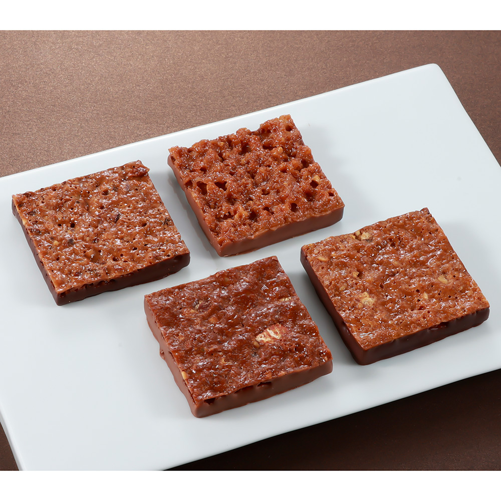 ヌガティーヌを合わせたサブレをチョコレートでコーティング。ショコラ、ノワゼット、クルミ、ココナッツ4種を各1枚ずつ詰合せました。2026年のジャン=ポール・エヴァンのテーマは〈DES REVES ET DES FEVES (夢、そしてカカオ)〉。想像力と磨き抜かれた技術を駆使し、感情とユーモアを吹き込むことで、新たなクリエイションを実現するというショコラティエとしての「夢」。新しい香りや味わい、色をもたらしてくれるカカオと出会い、新たなショコラで皆様を驚かせ、魅了し続けたいというカカオへの情熱。そして、カカオの生産者への深い敬意と「ショコラを通じて喜びと幸せをお届けしたい」という強い想いを込めた新コレクションをお届けいたします。