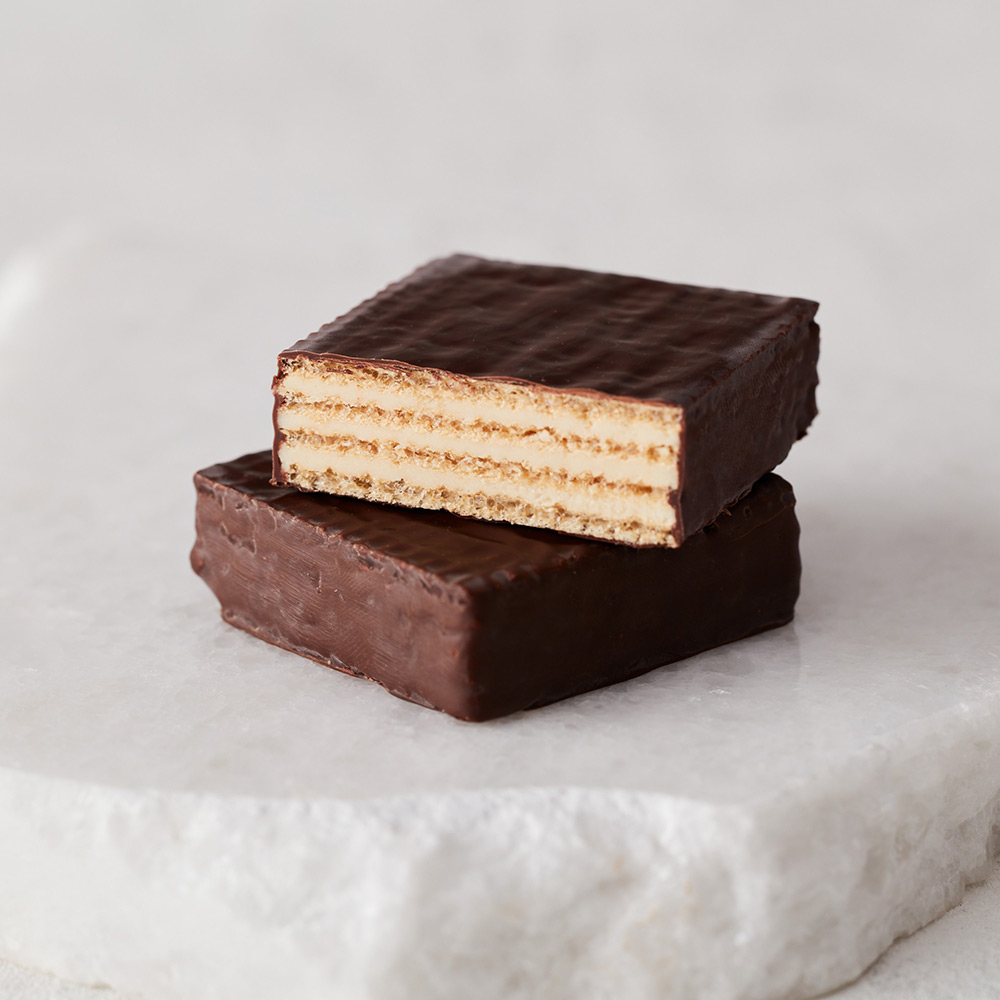 起毛感のある素材を使用し、大きめのマチがポイントの保冷バッグです。日常のお買い物にも便利にお使いいただけます。軽い食感のクリームサンドウエハースをチョコレートで包んだ、冬の定番「ヴィエネッズィ」とのセットでお届けします。