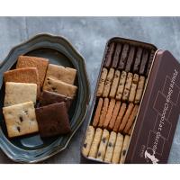 「フール・セック・ショコラ・カレ」フランス語で「オーブンで焼き上げた四角い焼菓子」カレには四角いという意味もありますが、4種類という意味も込めました。<ドゥーブル・ショコラ(四角黒)>チョコレートとココアを練り込んだ生地。チョコチップ入り。濃厚でチョコレートを食べているかのようなクッキー。<ジャンドゥーヤ(四角茶)>ヘーゼルナッツペーストとチョコレートを練りこんだクッキー。ほろっとした口溶けのよい食感。<カフェ・カカオニブ(四角ベージュ)>チョコレートとコーヒの粉を練りこんだクッキー。全粒粉を使ってしっかり焼き込んだ香ばしさが特徴。<ノワゼットショコラ(四角白)>サクッとしたヘーゼルナッツとアーモンドのパウダーを使用した生地。チョコチップ入り。