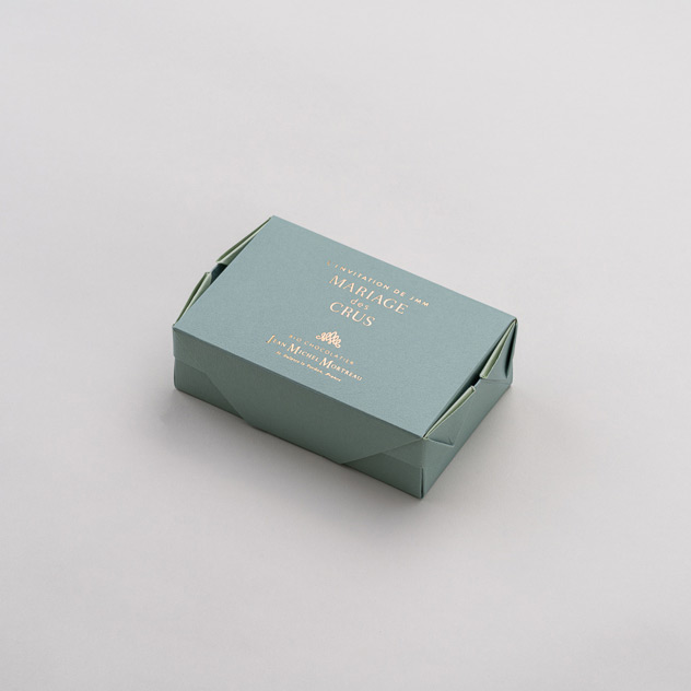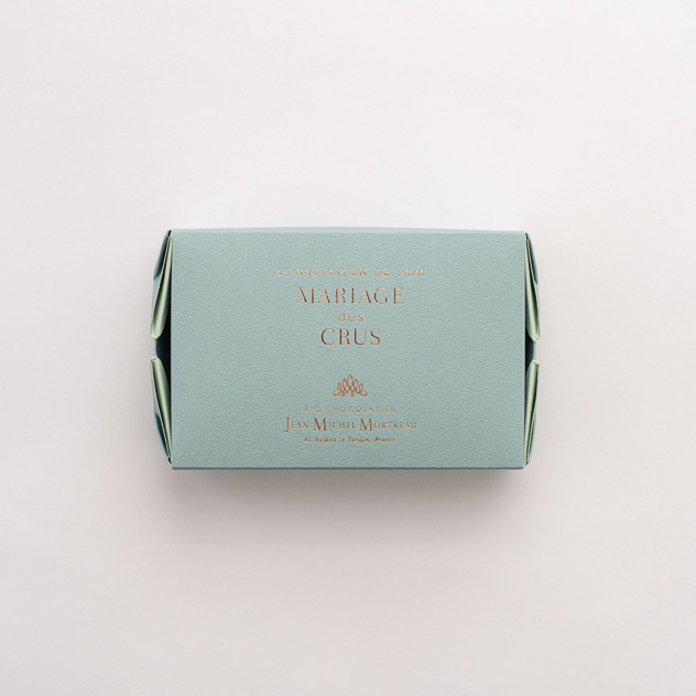 マリアージュとは、2種以上の素材を組み合わせた時に、お互いの味や風味、香りなどに相乗効果がはたらき、最高に相性が良く、美味しい調和を生み出す関係のことです。カカオには、品種や産地によって香りや風味にさまざまな個性があります。「マリアージュ・デ・クル」アソートは、ドミニカ共和国・ペルー・グレナダ(ベルモントエステート)の3ヵ国のカカオがそれぞれ持つ、酸味や苦みなどの個性を引き出しながら、ガナッシュ・キャラメル・プラリネをベースとしたフィリングとのマリアージュを追求しました。ブランドを代表する希少な一番塩を使用したガナッシュやキャラメルや、ロースト加減にもこだわった格調高い香りや濃厚な風味のナッツのプラリネに加え、フランボワーズやベルガモットの香り豊かなショコラを詰め合わせました。