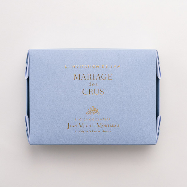 マリアージュとは、2種以上の素材を組み合わせた時に、お互いの味や風味、香りなどに相乗効果がはたらき、最高に相性が良く、美味しい調和を生み出す関係のことです。カカオには、品種や産地によって香りや風味にさまざまな個性があります。「マリアージュ・デ・クル」アソートは、ドミニカ共和国・ペルー・グレナダ・ブラジルの4カ国のカカオがそれぞれ持つ、酸味や苦みなどの個性を引き出しながら、ガナッシュ・キャラメル・プラリネをベースとしたフィリングとのマリアージュを追求しました。ブランドを代表する希少な一番塩を使用したガナッシュやキャラメル、ロースト加減にもこだわった格調高い香りや濃厚な風味のナッツのプラリネに加え、ドイツ産のバラを贅沢に使用したハートのローズショコラの華やかなアロマも愉しめます。ペルー産カカオにはベルガモット風味のガナッシュ、グレナダ(ベルモントエステート)産カカオには好相性のリキュールや瑞々しいマンゴー&パッションフルーツの香りをまとわせて。ブラジル産カカオとカフェのマリアージュなどの、ジャン=ミッシェル・モルトローのマリアージュを堪能できるだけでなく、今シーズンの新しい食感のプラリネ・フィユティーヌもお愉しみいただけます。
