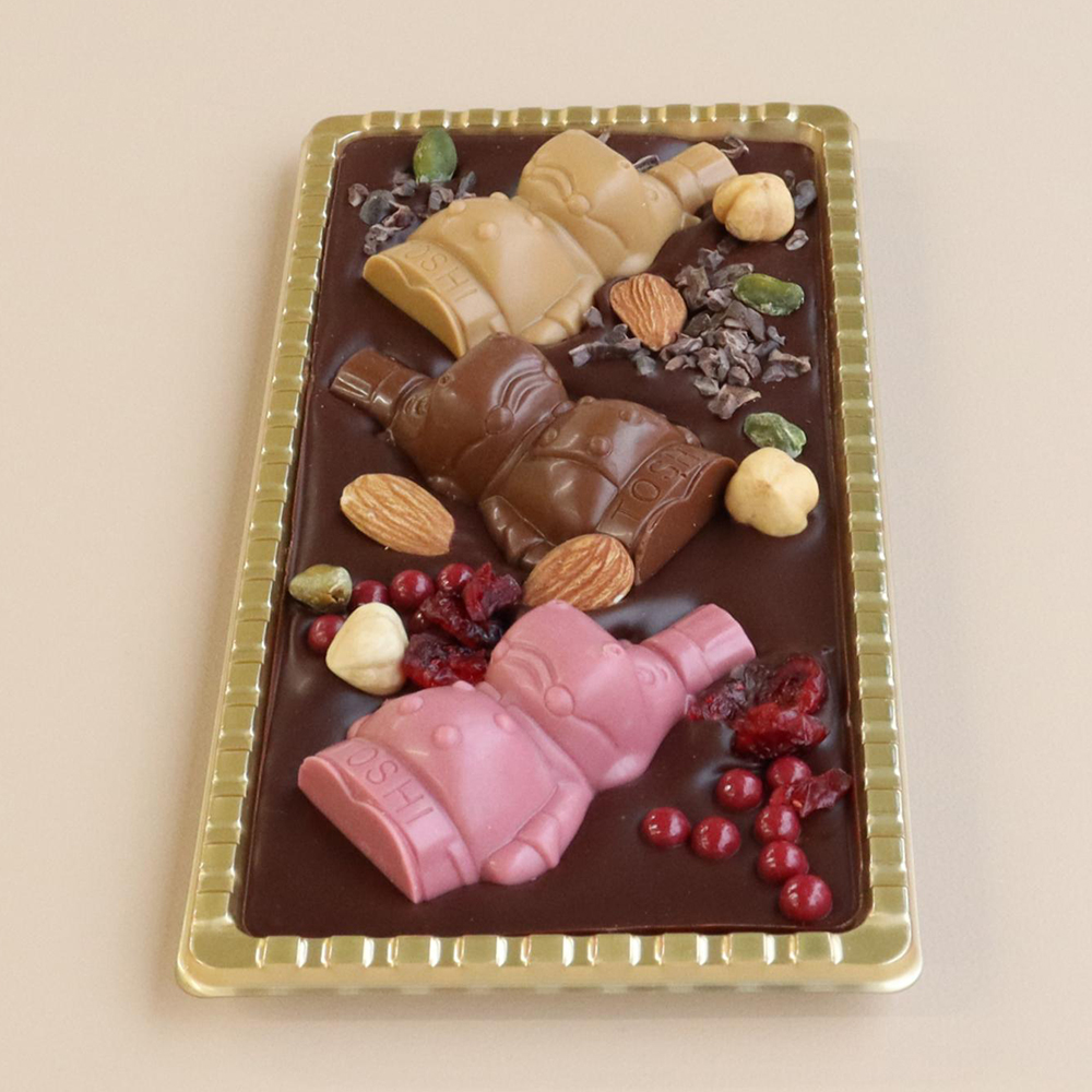可愛らしいだけでなく、土台には自社管理農園のエクアドルカカオ65%のチョコレートを使用。上には3種類の味わいのカバの形のチョコレートと、ナッツやドライフルーツなどたくさんの食感が楽しめます。