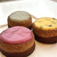 フランボワーズとレモンや、パッションフルーツとオレンジ、ピスタチオとフランボワーズを組み合わせました。ブラウニーとチョコチップ入りクッキーの中にコンフィを入れ、表面には、それぞれのグラスロワイヤルで仕上げた新感覚の焼き菓子。食べ応えのある食感とコンフィ&チョコレートのアクセントが楽しい一品です。