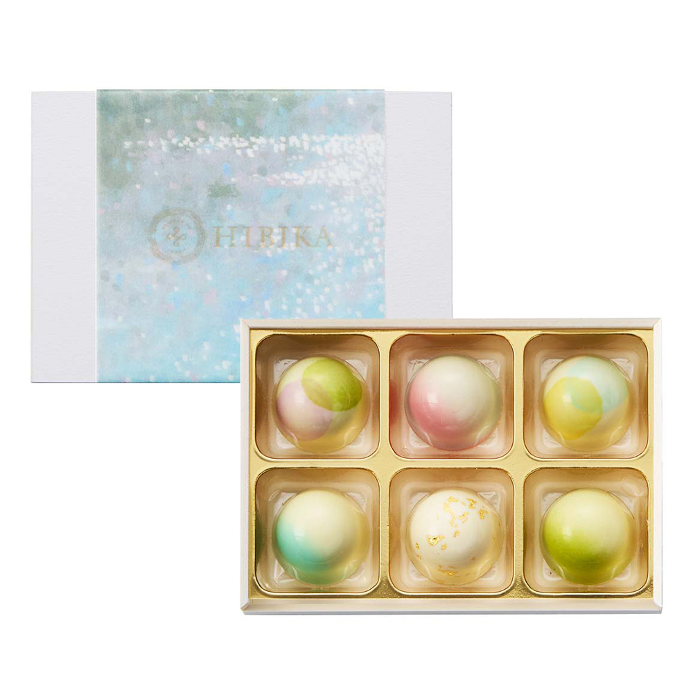 芽だち(めだち)-黒蜜と大豆-、咲分(さきわけ)-紀州の梅酒と桜-、春陽(しゅんよう)-柚子とほうじ茶-、猫柳(ねこやなぎ)-温州みかんとジンジャー-、薄氷(はくひょう)-ヘーゼルナッツとキャラメルサレ-、下萌ゆ(したもゆ)-はちみつとライム- 計6個入