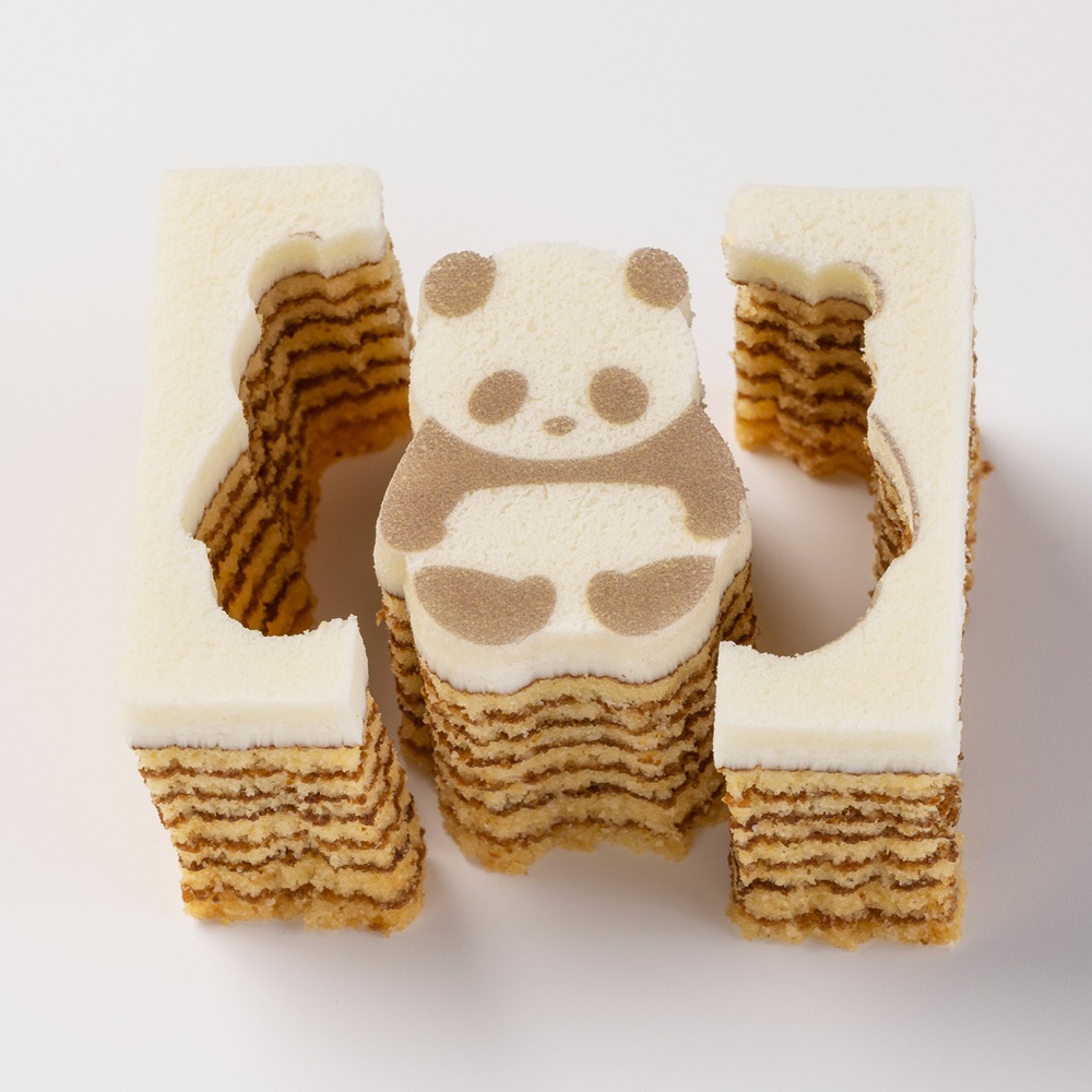 パンダの形に型ぬきしながら食べる、遊び心のあるバウムクーヘンとガトーショコラです。