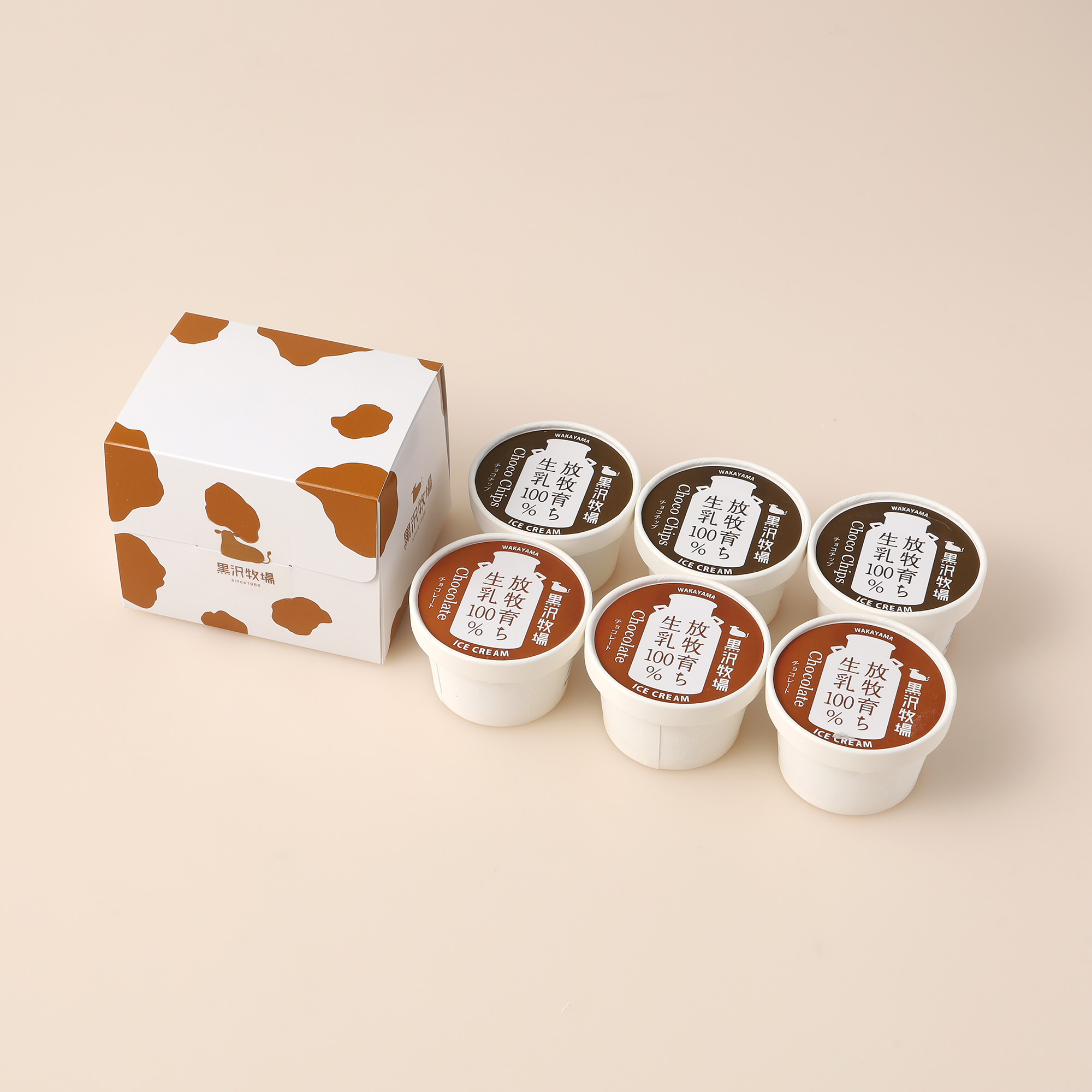 牛柄模様がかわいいチョコ味ロールケーキと、濃厚なチョコレートアイス3個、カリッと食感が楽しいチョコチップアイス3個を詰め合わせたチョコづくしのセットです。見た目の楽しさと、なめらかな口どけ、チョコの深い味わいを一度に楽しめます。ご家族やご友人への贈りものにはもちろん、自分へのご褒美にもおすすめ。冷凍でお届けいたしますので、お好きなタイミングでお召し上がりいただけます。