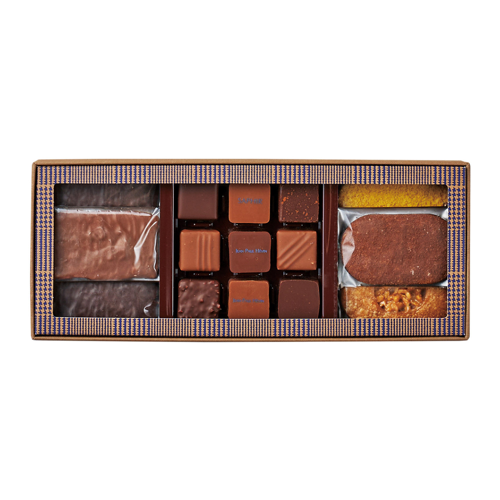口どけなめらかなガナッシュや香ばしいナッツのプラリネなど「ジャン=ポール・エヴァン」を代表するボンボンショコラと、サクサクとした食感のクラッカン、軽やかな口あたりのサブレを一箱に詰め合わせました。