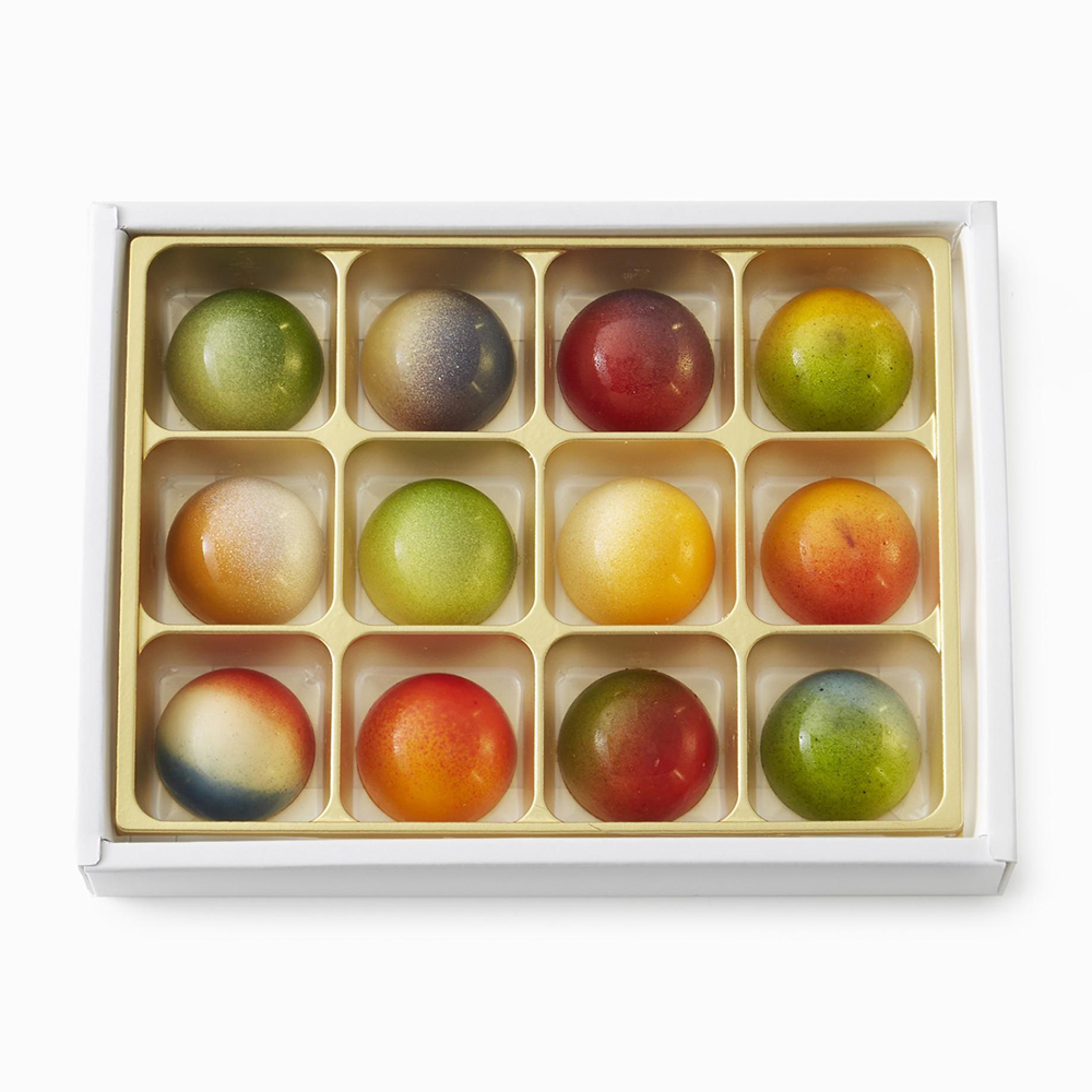 <全12種類入>京都宇治の抹茶とラテ、京都宇治のほうじ茶とマロン、アールグレイとカルダモンのレモンティ、黒すぐりとバレンシアオレンジと苺、柚子とレモンの果汁、林檎とシナモンの香り、洋梨とラヴェンダーの軌跡、マンゴーとオレンジと常夏、栗とマロンの協奏、ベトナム産カカオとゴットマザー、メキシコ産カカオとテキーラサンライズ、エクアドル産カカオとXYZ