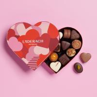ハート型プラリネ、バレンタインプラリネ、定番プラリネを15個詰め合わせたロマンチックなハート型のボックスは、バレンタインデーに愛情を伝えるギフトです。