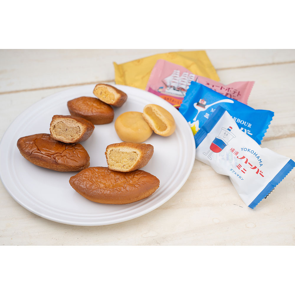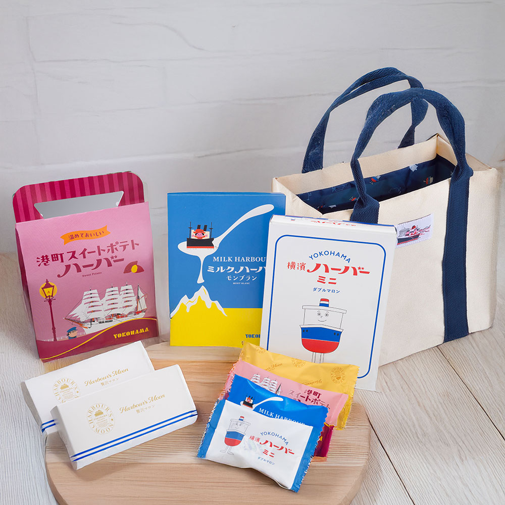 横濱ハーバーミニダブルマロン(5個入)×1箱、港町スイートポテトハーバー(5個入)×1箱、ミルクハーバーモンブラン(5個入)×1箱、贅沢マロン(単品)×2箱、ハーバーオリジナルトートバック×1個