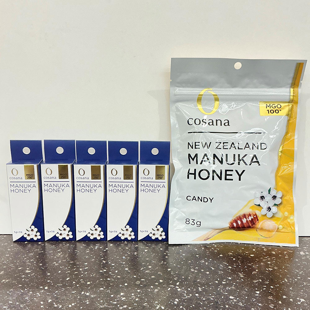 おいしく体調管理・マヌカハニーMGO250+(分包タイプ)とマヌカハニーキャンディでいつでもケア。