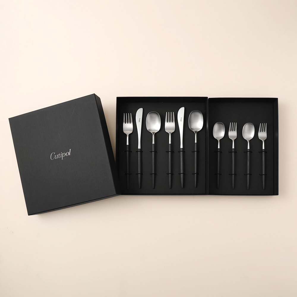 <セット内容>テーブルナイフ、テーブルフォーク、テーブルスプーン各2本(6本セット用ボックス )、デザートフォーク、デザートスプーン各2本(4本セット用ボックス )